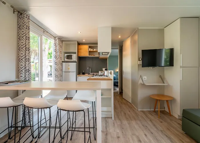 Τοποθετημένη σε απόσταση 5 λεπτών με τα πόδια από Vendres Plage στην πόλη Vendres, η Cocon Marin Dans Camping 5 Etoiles προσφέρει πλήρως εξοπλισμένη κουζίνα. Διαθέτει θερμαινόμενη πισίνα καθώς και παιδική χαρά και τραπέζι μπιλιάρδου.
